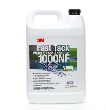 El adhesivo de base agua 3M™ Fast Tack 1000NF es un adhesivo único de base agua especialmente diseñado para ofrecer una combinación efectiva de rapidez, unión resistente al calor, reposicionamiento y de gran fuerza final. Nuestro adhesivo es no inflamable, libre de policloropreno y tiene cero COV (compuestos orgánicos volátiles) (de conformidad con el método de prueba 24 de la EPA).